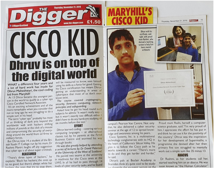 The Sunday Glasgow Herald also featured a story on Dhruv Maheswari